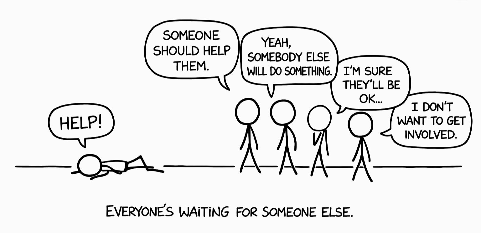 It wasn't conceived as the solution, but as my attempt to understand and perhaps disrupt this bystander phenomenon, starting with myself. This is the first of the series of posts that chronicles that journey.