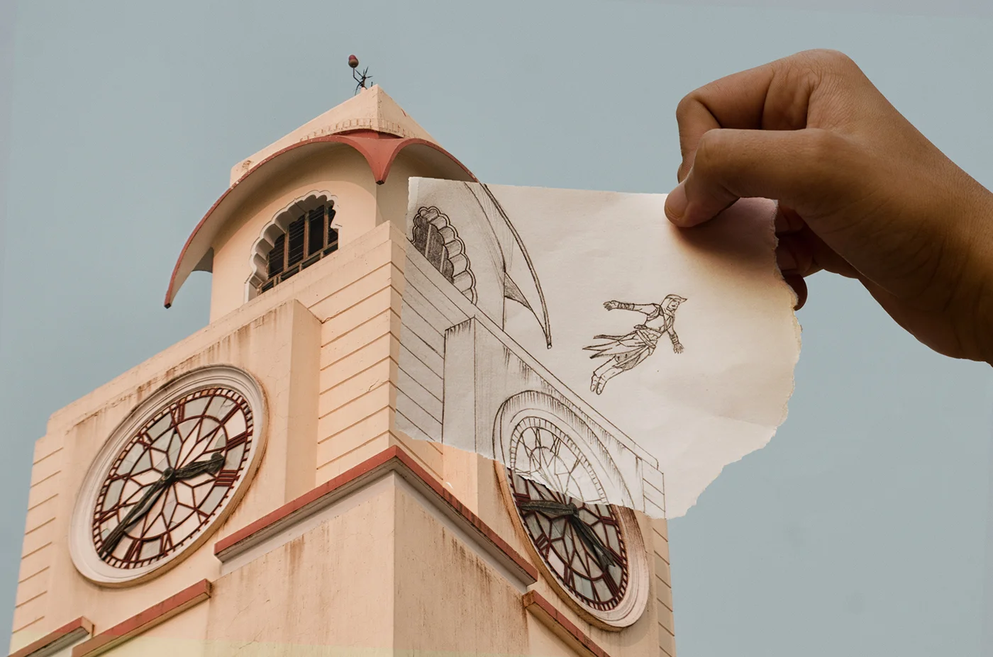 This photograph imagines Ezio, the protagonist of the Assassin's Creed legacy taking a LOF from the clock tower of BITS Pilani.